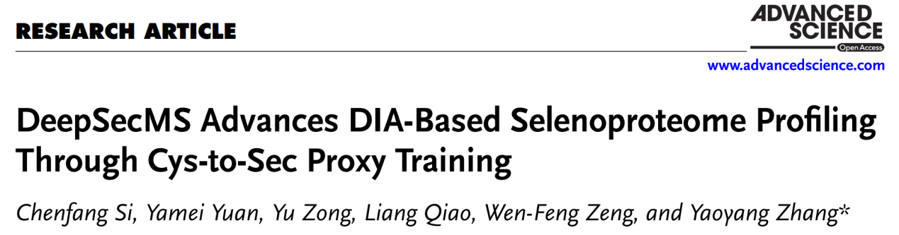 Advanced Science | 张耀阳课题组开发DeepSecMS方法实现硒蛋白质组的深度解析