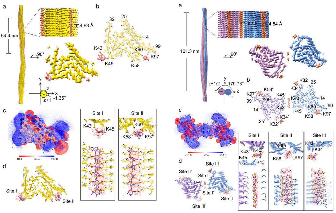 图2. Heparin诱导α-syn形成具有构象多态性的纤维原子结构分析。