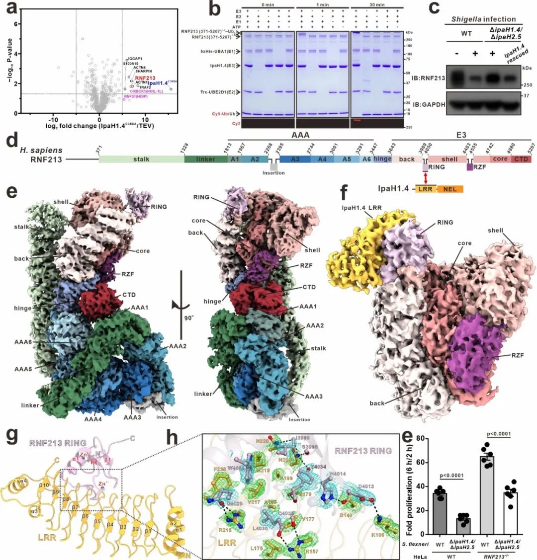 Nat Commun | 张一小团队与合作者发现福氏志贺氏菌的E3效应蛋白IpaH1.4拮抗人源免疫相关蛋白RNF213的新机制