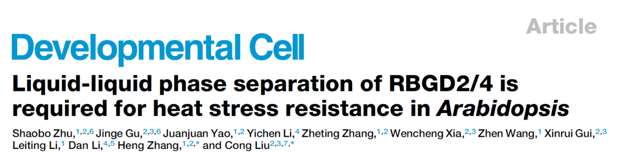 Developmental Cell | 刘聪与合作者揭示RNA结合蛋白相分离在植物热胁迫应答中的重要作用