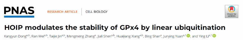 2022年10月24日,中国科学院上海有机化学研究所生物与化学交叉研究中心袁钧瑛课题组在Proc Natl Acad Sci USA. 上发表论文“HOIP modulates the stability of GPx4 by linear ubiquitination”对这一系列问题进行了探索。