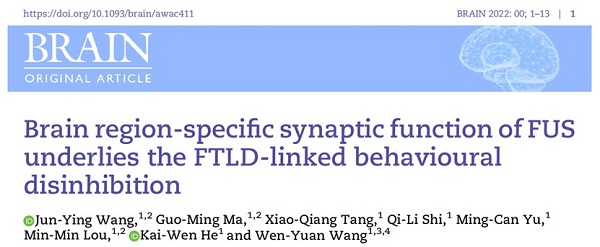 Brain | 王文元、何凯雯课题组揭示FUS对神经系统功能调节的脑区异质性及其在FTLD中的潜在致病机制