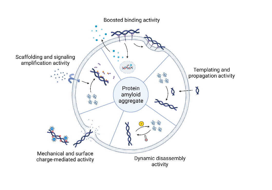 图2. 淀粉样蛋白纤维聚集体具备的不同生理或病理活性