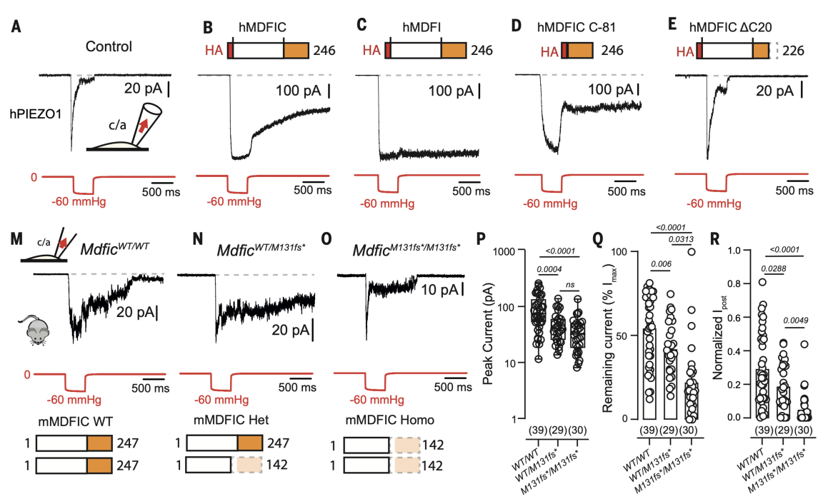 图3. MDFIC/MDFI调控Piezo蛋白的门控特性