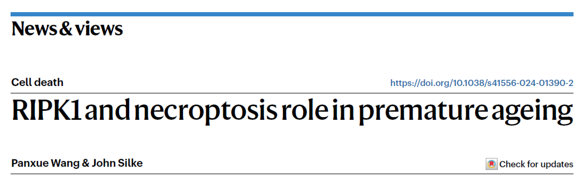 Nature Cell Biology杂志同期发表了细胞死亡领域权威澳大利亚WEHI研究所John Silke教授的news & views文章对该研究进行了新闻观点评述。