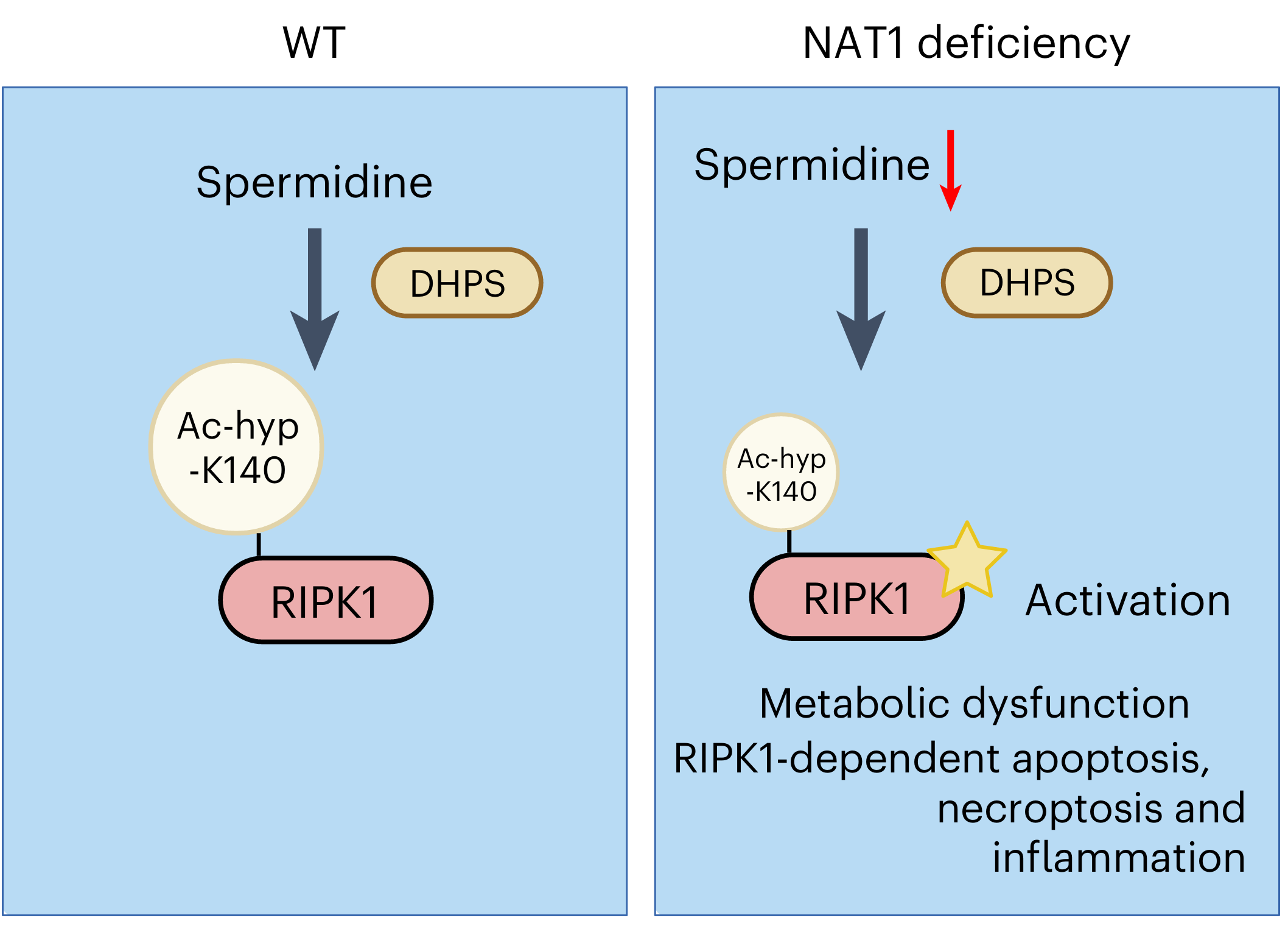 Nat Cell Biol | 袁钧瑛实验室揭示亚精胺调控RIPK1乙酰羟丁胺化(acetylhypusination)修饰抑制糖尿病的发生及其并发症的分子机理