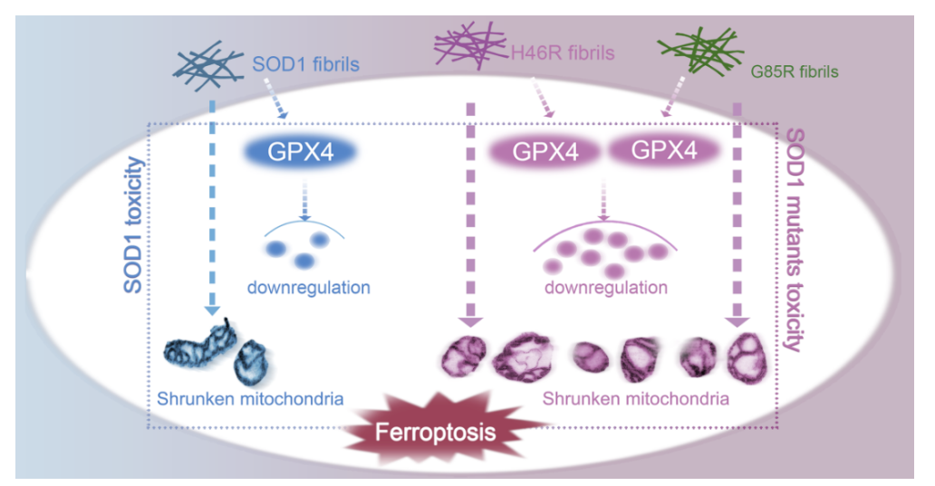 肌萎缩侧索硬化症(ALS)又称渐冻症或渐冻人症,是一种进行性的、致命的神经退行性疾病。铜锌超氧化物歧化酶(SOD1)病理突变体在中枢神经系统的运动神经元形成纤维样聚集体是ALS的重要病理特征之一,SOD1编码基因sod1是最早被发现的与ALS有关的基因,迄今为止已经发现引起家族遗传性ALS的SOD1突变体多达208种,然而,这些SOD1突变体诱发家族遗传型ALS的分子机制仍不清楚。
