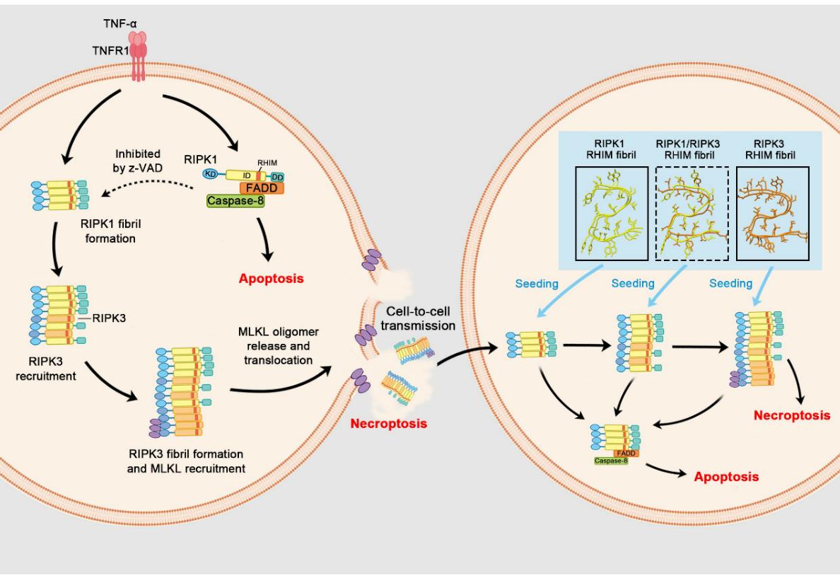 PNAS | 袁钧瑛/刘聪合作发现RIPK1/RIPK3淀粉样纤维跨细胞传播诱导细胞坏死的新机制