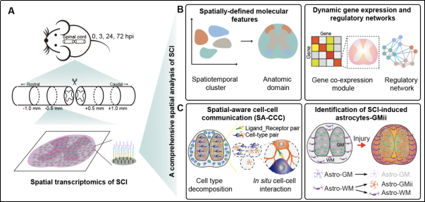 图1. 小鼠脊髓损伤的空间转录组研究路线和数据分析概览图