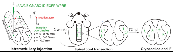 图2. 脊髓实质注射和谱系追踪揭示损伤后出现在灰质的Astro-GMii细胞亚群来