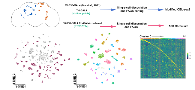 图2 对成年果蝇大脑中节律神经元和多巴胺神经元在单细胞水平的比较研究