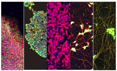 图二:利用不同的小分子组合,干细胞可以被诱导分化为神经前体细胞和不同的功能性细胞,例如运动神经元,多巴胺能神经元和胶质细胞等。