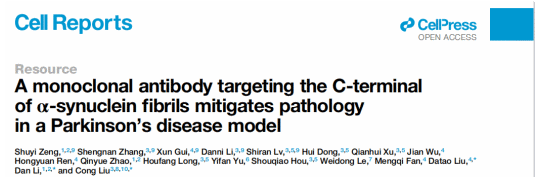 Cell Reports | 刘聪与合作者开发靶向帕金森病α-syn病理聚集体的单克隆抗体